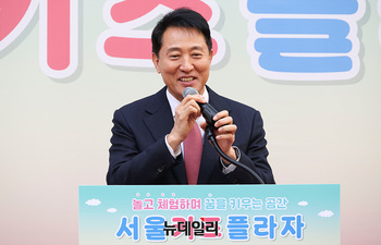 오세훈 서울시장이 12일 오후 서울 강서구 서울키즈플라자 개관식에서 축사를 하고 있다.