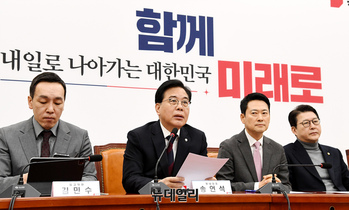 송언석 국민의힘 원내대표가 9일 오전 국회에서 열린 최고위원회의에서 모두발언을 하고 있다.