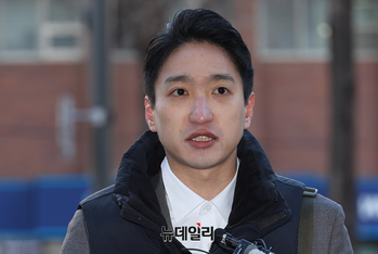 이상욱 정의당 강서구위원장이 9일 오전 서울 강서경찰서에 고발인 조사를 위해 출석하고 있다. 이 위원장은 지난달 김경 서울시의원을 CES 티켓 유용과 관련 직권남용ㆍ청탁금지법 위반ㆍ배임 등으로 서울경찰청에 고발한 바 있다.