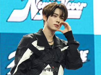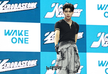 제로베이스원 박건욱이 1일 오후 서울 용산구 블루스퀘어에서 열린 첫 정규 앨범 'NEVER SAY NEVER(네버 세이 네버)' 쇼케이스에서 포즈를 취하고 있다. 이번 정규앨범은 음악적 여정에서 가방 빛나는 하이라이트이자, 아티스트로서의 정체성과 존재감을 한층
