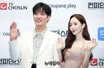 배우 박희순, 박민영이 1일 오후 서울 마포구 상암 스탠포드호텔에서 열린 TV CHOSUN 주말미니시리즈 '컨피던스맨 KR' 제작발표회에서 포즈를 취하고 있다.드라마 '컨피던스맨 KR'은 다재다능한 능력을 보유한 사기꾼 3명이 이 시대의 악당들을 향한 복수에 나서는 이