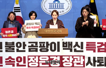 전국학부모단체연합, 사단법인 대안연대, 보건학문앤인권연구소 회원들이 16일 서울 여의도 국회소통관에서 최근 감사원 감사를 통해 드러난 코로나19 백신 이물질 방치 및 접종 강행 실태를 규탄하는 기자회견을 갖고 있다. 이들은 당시 방역 책임자인 정은경 보건복지부