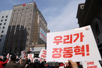 [포토] 국민의힘 중앙당사 앞 모인 장동혁 대표 지지자들
