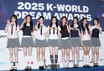 그룹 아일릿이 21일 오후 서울 송파구 잠실 실내체육관에서 열린 '2025 케이 월드 드림 어워즈( K-WORLD DREAM AWARDS 2025)' 블루카펫에서 포즈를 취하고 있다.