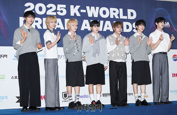 그룹 뉴비트가 21일 오후 서울 송파구 잠실 실내체육관에서 열린 '2025 케이 월드 드림 어워즈( K-WORLD DREAM AWARDS 2025)' 블루카펫에서 포즈를 취하고 있다.