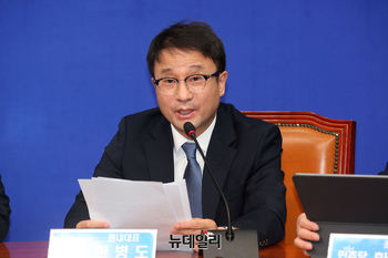 한병도 더불어민주당 원내대표가 16일 오전 국회에서 열린 최고위원회의에서 모두발언을 하고 있다.