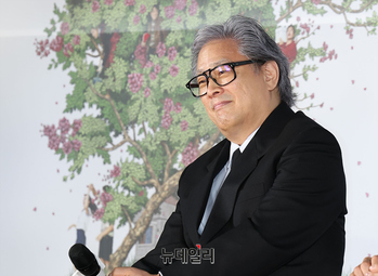 박찬욱 영화감독이 19일 오전 서울 CGV용산아이파크몰에서 열린 영화 '어쩔수가 없다(감독 박찬욱)' 제작보고회에 참석해 자리하고 있다. '어쩔수가 없다'는 모든 게 완벽해 ‘다 이루었다’고 느끼던 가장 만수(이병헌)가 평생 헌신한 제지 회사에서 하루아침에 해