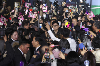 한동훈 전 국민의힘 대표가 8일 오후 서울 송파구 잠실실내체육관에서 열린 토크콘서트에 지지자들의 환호를 받으며 입장하고 있다.