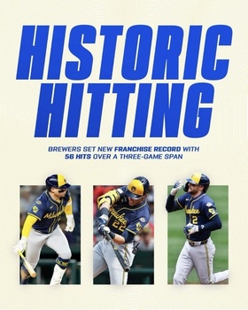 밀워키, 워싱턴과 3연전서 도합 56안타 폭발 … 구단 신기록