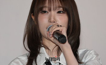 가수 최예나가 11일 오후 서울 강남구 CGV 압구정에서 열린 5번째 미니앨범 러브캐쳐 기자간담회에서 신곡 소개를 하고 있다. 이번 앨범은 타이틀곡 '캐치캐치'를 포함해 5트랙을 담았다.