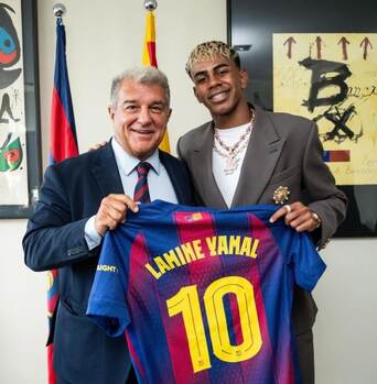 스페인 바르셀로나의 18세 '슈퍼 신성' 라민 야말의 등에 '10번'이 달렸다. 바르셀로나는 17일(한국시간) 공식 홈페이지를 통해 "야말은 바르셀로나 새로운 10번이다. 야말은 41번으로 바르셀로나에 데뷔를 했고, 27번으로 빛을 내다 19번이 됐고, 이제