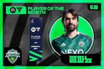 전북 현대 콤파뇨가 K리그 공식 비디오게임 파트너 일렉트로닉아츠(EA)가 후원하는 2025년 6월 'EA SPORTS 이달의 선수상'을 수상했다.'이달의 선수상'은 한 달간 열린 K리그1 경기의 MOM(경기수훈선수), 베스트일레븐, MVP에 선정된 선수 중에서 한국프로