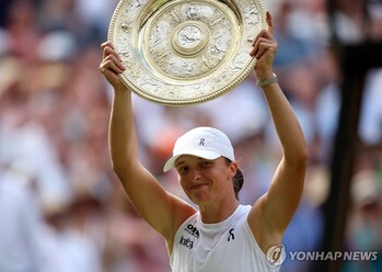 이가 시비옹테크(폴란드)가 생애 첫 윔블던 테니스대회 정상에 올랐다. 세계 랭킹 4위 시비옹테크는 12일(현지시간) 영국 런던의 올잉글랜드 클럽에서 열린 대회 여자 단식 결승에서 세계 랭킹 12위 어맨다 아니시모바(미국)에게 2-0(6-0 6-0) 완승을 거뒀