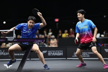 한국 남자 탁구 임종훈-안재현 조가 월드테이블테니스(WTT) 미국 스매시에서 '우승'을 차지했다. 세계 랭킹 5위 임종훈-안재현 조는 13일(한국시간) 미국 라스베이거스에서 열린 WTT 미국 스매시 남자 복식 결승에서 프랑스의 세계 랭킹 1위 펠릭스 르브렁-알