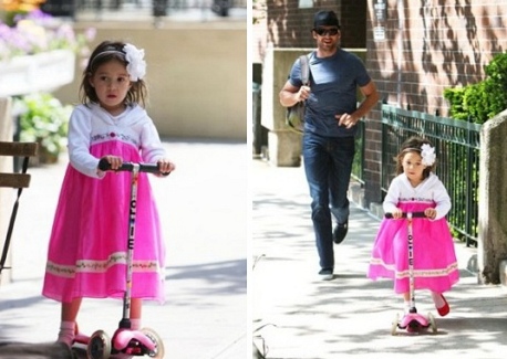 지난 13일부터 인터넷 상에 떠돌기 시작한 이 사진에는 휴잭맨과 그의 딸 에바가 함께 나들이를 나선 모습이 담겨 주목을 끌었는데, 커다른 꽃을 머리에 단 에바는 흰 티셔츠에 분홍색 한복 치마를 곱게 차려입어 영락없는 한국의 어린 아이를 연상케 했다.