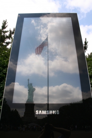 삼성전자 북미총괄(대표 최창수 부사장)은 뉴욕 자유의 여신상 조형물 앞에 46인치 정보표시 대형 모니터(모델명:460DRn-A) 2대를 설치했다고 13일 밝혔다.