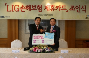 LIG손해보험(회장 구자준)은 21일 IBK기업은행(은행장 윤용로)과 전략적 제휴를 통해 카드 포인트로 보험료를 할인 받을 수 있는 ‘LIG-IBK 제휴카드’를 출시했다고 밝혔다(사진 참조).
