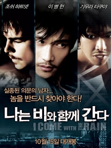 영화 나는 비와 함께 간다는 비밀에 싸인 채 실종된 한 남자와 각기 다른 이유로 그를 찾아야만 하는 두 남자의 뜨거운 대결을 그리고 있는 액션 범죄 스릴러물이다. 이병헌, 조쉬 하트넷, 기무라 타쿠야 외에도 연기력과 매력을 겸비한 든든한 조연들이 나와 영화의 재미와 품격을 높여준다.