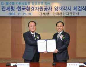 MOU 체결 이후 관세청에서 매년 평균 발생하는 폐기물 900t의 폐기 업무를 자원공사에 위탁한다면 환경보호에 도움이 되는 것은 물론이고 연간 2억여원의 경제적 효과도 올릴 수 있는 것으로 예상된다.