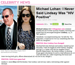 그러나 마이클 로한은 미국 연예주간지 US 매거진(사진)과의 인터뷰를 통해 "이번 일은 나와 무관한 일"이라며 "누군가 나를 사칭해 저지른 소행"이라고 반박했다. 이어 "나는 절대로 내 딸에 대해 그런 말을 한 사실이 없다"고 덧붙였다.