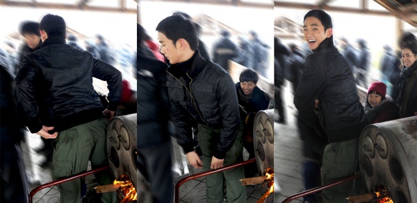 이번에 공개된 사진은 꽃샘추위가 기승을 부리던 3월, 기차역에서 가족들과 헤어지게 되는 장면을 촬영하다 찍힌 사진으로, 김수현은 난로에 몸을 녹이던 중 천진난만한 표정과 행동으로 극중 가족들과 스태프들에게 웃음을 선사하는 모습을 보이고 있다. -
