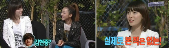 두 사람의 행복한 만남을 지켜본 소녀시대의 태연은 "인형처럼 예쁜 사람들이 서로 좋아한다"고 말했고 김신영은 "예쁜 사람만 기억하는 더러운 세상!"이라고 울분을 토해 웃음을 자아냈다.