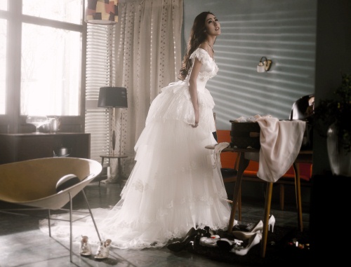 간미연은 ‘미쳐가’ 무대의상을 직접 디자인 한 ‘로자스포사’ 최명원 원장과의 인연으로 9월의 가장 아름다운 신부를 표방한 웨딩화보에서 한창 물오른 절정의 아름다움을 선보였다.