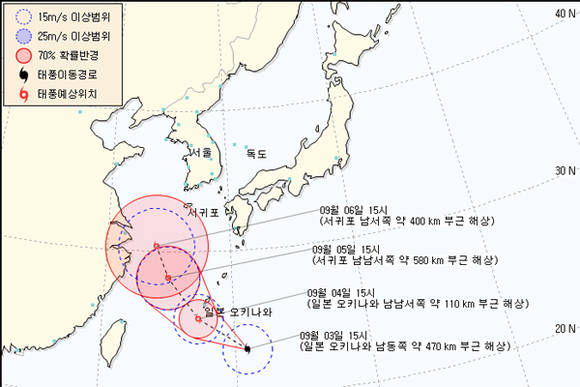 네티즌, 미군태풍경보센터, 일본기상청 뒤져가며 촉각기상청 예보 6일 서귀포 남서쪽 400km 지점 도달