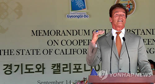 아널드 슈워제네거 미국 캘리포니아 주지사는 15일 한국과 미국의 자유무역협정(FTA)이 미국 의회에서 조속히 비준돼야 한다고 강조했다.