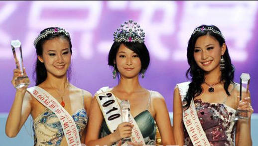 지난 17일, 중국 선전시 동부 화차오 성대극원에서 열린 '2010년 제60회 미스월드선발대회 중국지역 총결선'에서 1~3위에 입상한 탕샤오(가운데), 거이훙(오른쪽), 쉬지단(왼쪽)의 모습. 우승을 차지한 탕샤오는 오는 10월 중국 싼야에서 열리는 미스월드대회에 중국의 대표선수로 출전한다고 온바오닷컴이 20일 전했다.