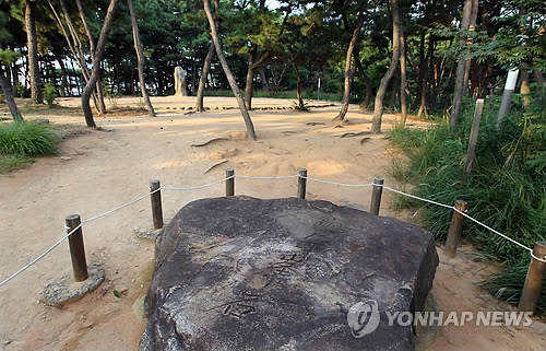 김해 구지봉 정상.다음달 6일 경남 진주에서 개막되는 제91회 전국체육대회 성화가 채화될 사적 429호 김해 구지봉(龜旨峯). 김해시 중심인 시내 구산동 산 81-2에 위치한 구지봉 정상 중앙 부위에는 거북 머리모양의 바위가 세워져 있다.
