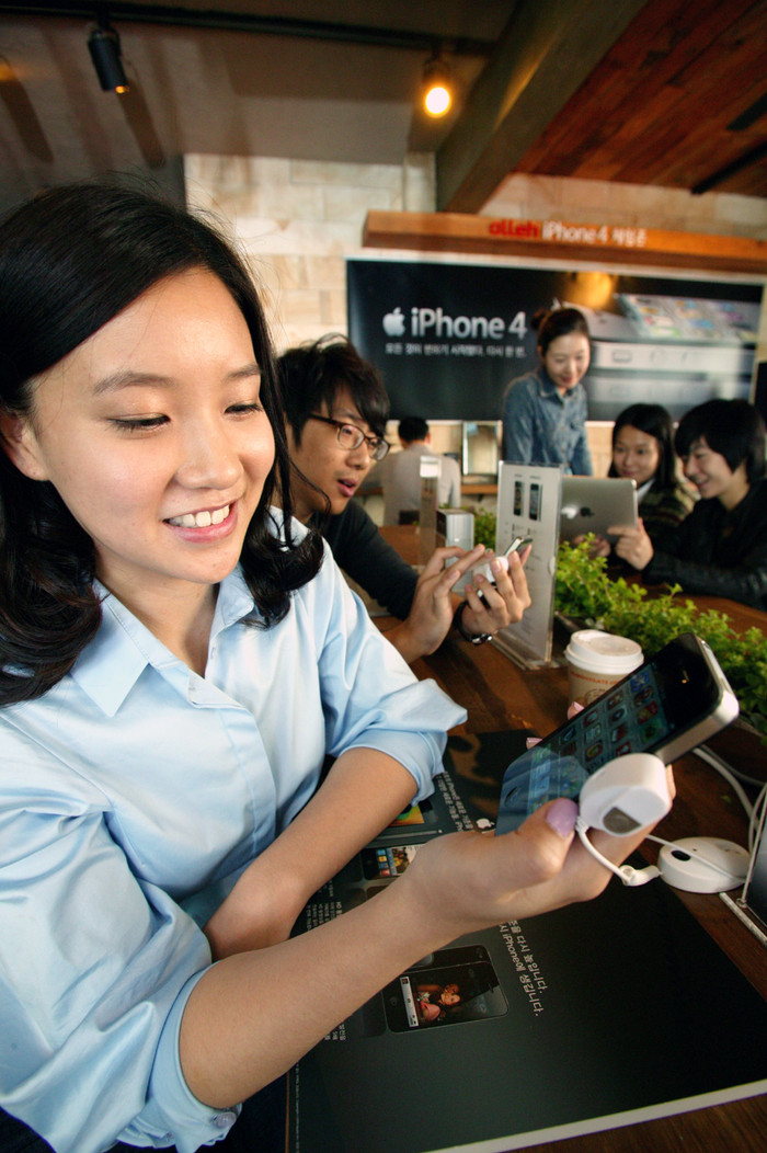 KT, ‘디초콜렛커피’ 압구정매장에 아이폰4 체험존 마련 아이폰4와 태블릿PC 이용하며 이벤트 참여 가능