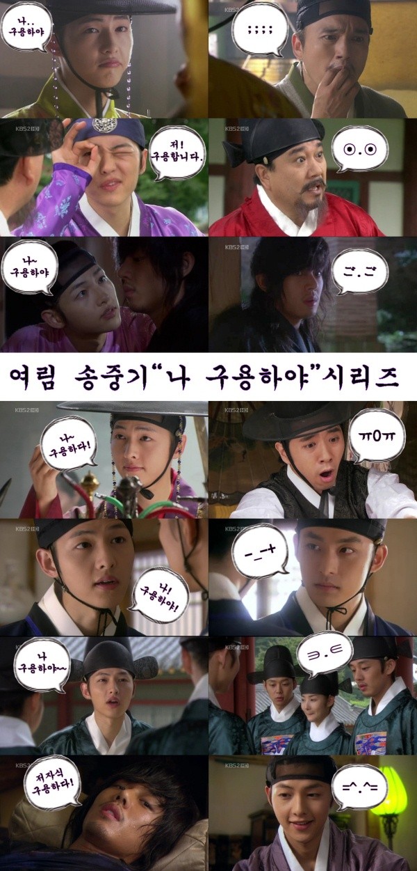 '나 구용하야 시리즈'는 여림이 "나 구용하야"를 외치는 상황과 인물에 따라, 각기 다른 반응을 선보여 코믹함을 더한다. <성균관 스캔들> 속 황가, 대사성, 걸오, 시전 상인, 하인수는 물론 잘금 4인방까지 인물 별 반응을 한번에 볼 수 있는 것.