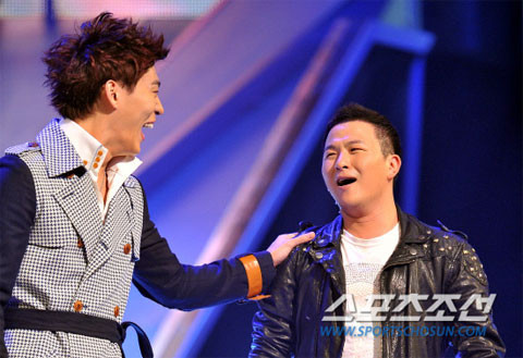 ▲수퍼스타K2 결승에서 우승한 허각을 축하하는 존 박.