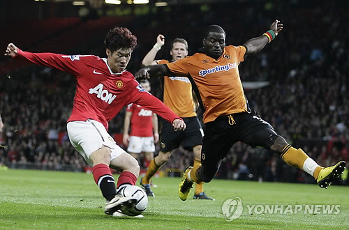박지성은 27일(한국시간) 새벽 영국 맨체스터 올드트래퍼드에서 치러진 울버햄프턴과 2010-2011 칼링컵 4라운드(16강)에서 1-1로 팽팽하던 후반 25분 천금같은 리드골을 터트렸다.