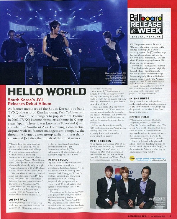 국내 아티스트가 빌보드 잡지의 표지 모델로 선정된 경우는 매우 이례적이다. 이는 글로벌 데뷔 앨범 '더 비기닝(The Beginning)'으로 세계시장에서 좋은 반응을 얻고 있는 JYJ의 음악적인 가치를 높이 평가한 빌보드지의 요청으로 성사됐다.
