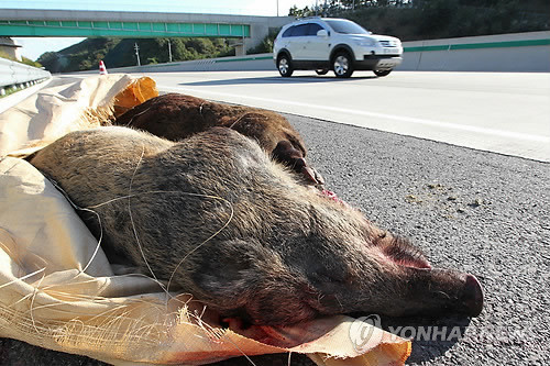사고현장에는 60㎏가량의 멧돼지 2마리가 100~200m 지점에서 각각 죽은 채 발견됐다.