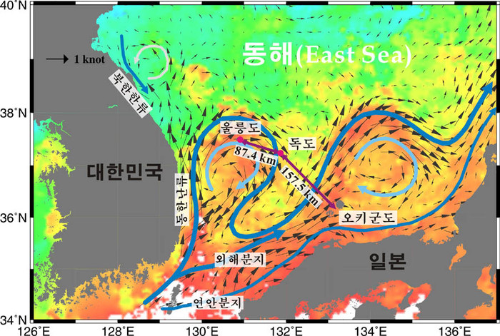 국립해양조사원은 “한반도 내륙에서 울릉도를 거쳐 독도로 흐르는 해류와 울릉도와 독도에서 발생하는 시계방향의 소용돌이는 기원전부터 독도에 대한 우리의 접근성과 영향력을 강하게 뒷받침한다. 이 시기에 해류를 따라 쉽게 한반도에서 울릉도, 독도, 오키군도로 항해가 가능했으나 오키군도에서 독도 방향으로 항해는 해류의 흐름을 거슬러야 되기 때문에 쉽지 않았을 것”으로 설명했다.