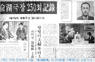 ● TV드라마「유호극장」5년간 250회 방송… 프로그램 제목에 처음으로 작가 이름 붙여兪 湖