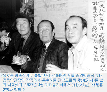 대중가요 가사에도 애국적 감수성을 반영하려고 하였던 이가 작사가 兪湖씨이다. 2003년 5월호 월간조선이 그를 인터뷰하여 소개한 글을 싣는다.