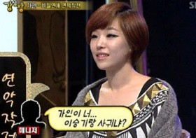 이와 관련 강호동이 "두 사람이 실제로 같은 미용실에 다니지 않느냐"고 묻자 가인은 사실을 인정한 뒤 "(미용실에서)이승기를 본 적이 있다"고 밝혔다. 그러나 "마주치면 민망할 것 같아서 일부러 피했다"고 덧붙였다.
