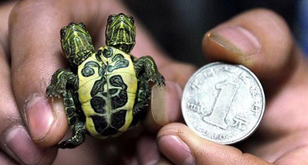중국의 한 야생동물원에서 머리가 둘 달린 거북이 태어나 화제다.