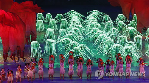 북한은 한국에 앞서 7번째로 들어왔고 주최국 중국은 맨 마지막에 식장에 들어섰다.