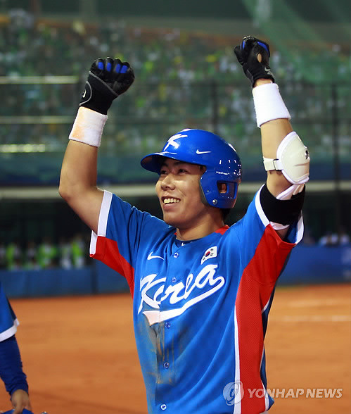 조범현 감독이 이끄는 한국은 19일 오후 아오티 야구장에서 열린 야구 결승에서 류현진(한화)-윤석민(KIA)의 환상 계투 속에 강정호(넥센,사진)가 홈런 두 방을 터뜨리며 장단 17안타를 몰아쳐 대만을 9-3으로 누르고 금메달을 땄다.