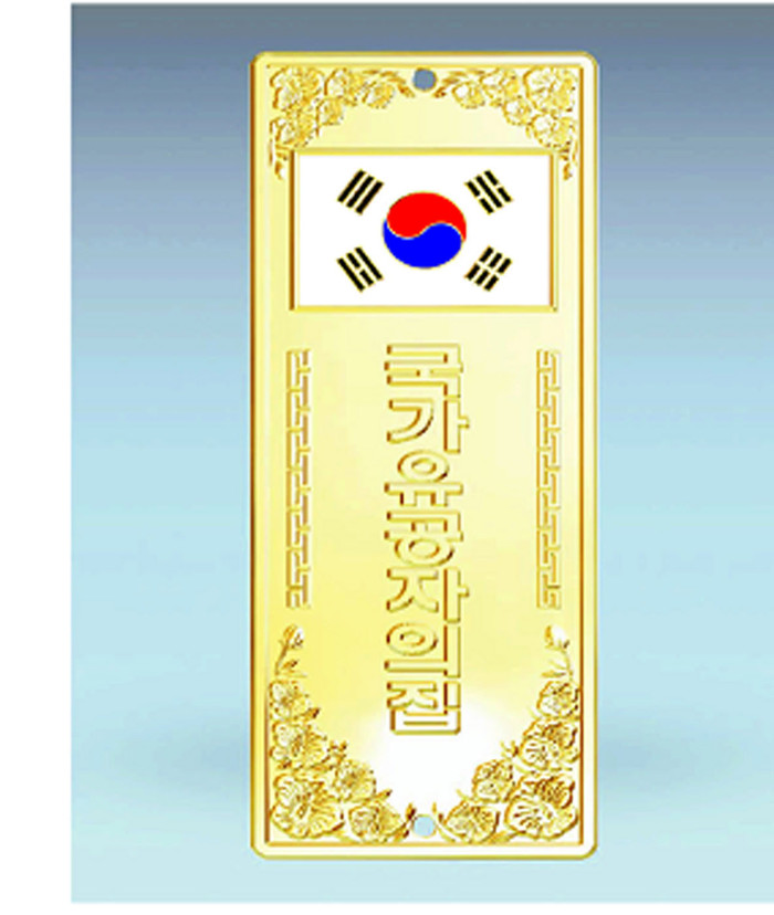문패상단에는 태극기를 새겨 넣어 나라사랑하는 마음을 표현하고 그 아래에 '국가유공자의 집', '독립유공자의 집', '보훈회원의 집' 표시를 양각으로 새겨 넣었다.