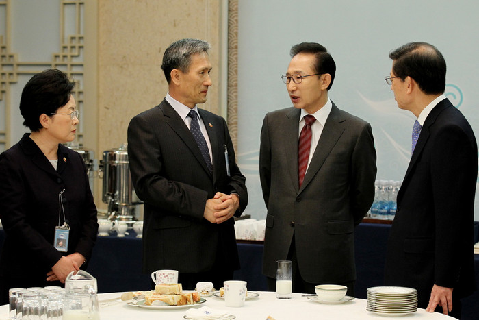 취임 후 첫 국무회의에 들어온 김관진 국방장관도 “국가 안보가 매우 어려운 시기에 나라를 굳건히 지키고 대통령이 당부한 국방개혁 소임을 다하겠다”고 언급했다.