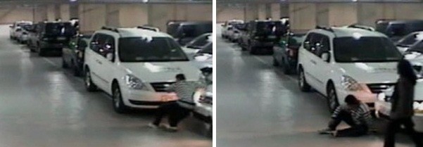 이에 승합차 주인으로 보이는 남성이 등장해 자신의 차량를 밀며 여성의 차량이 나갈 수 있도록 길을 터주고 있었는데 갑자기 이 여성이 차를 몰고 그대로 돌진, 남성을 바닥에 쓰러뜨리는 충격적인 장면을 연출했다.