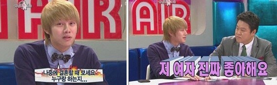 김희철은 "내가 아이돌이지만 정말 (여자를)밝힌다"며 "나중에 결혼할 때 봐라. 내가 누구랑 결혼하는지"라고 적극적인 해명에 나서 좌중을 웃음바다로 만들었다.