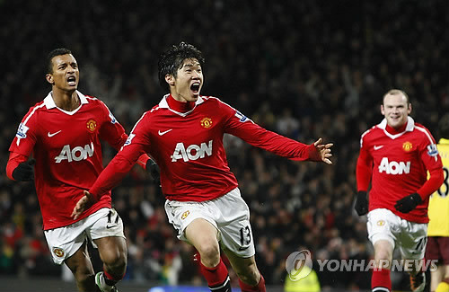 맨유는 전반 막바지에 박지성이 꽂은 결승골로 1-0 승리를 낚아채 9승7무(승점 34)로 아스널과 맨시티(이상 승점 32)를 제치고 단독 1위로 뛰어올랐다.