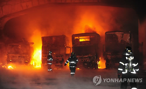 소방당국은 이날 화재로 트럭 17대, 승용차 10대, 승합차 3대, 탱크로리 4대, 트럭 3대 등 차량 37대와 굴착기 1대가 불에 탄 것으로 잠정 집계했다.